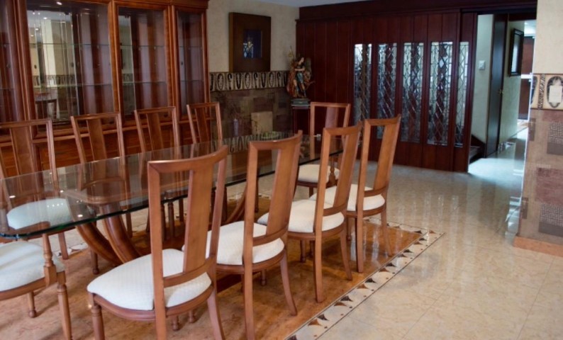 Planta Baja: consta de garaje para 3 autos, jardín de 170metros cuadrados con casacada, estancia muy amplia, salita para cantina y pantalla, despacho, jardín interior, ½ baño de visitas, cuarto de servicio con baño, área de lavandería, patio de tendido amplio, cocina equipada integral.